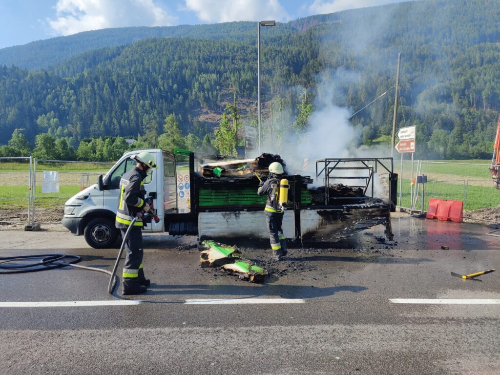 Kurz vor 08.30 Uhr wurden die Einsatzkräfte auf die Pustertalerstraße zur Kreuzung Ilstern in St. Sigmund alarmiert. Wie die Freiwillige Feuerwehr von St. Sigmund berichtet, war die Ladefläche eines Lieferwagens in Vollbrand.