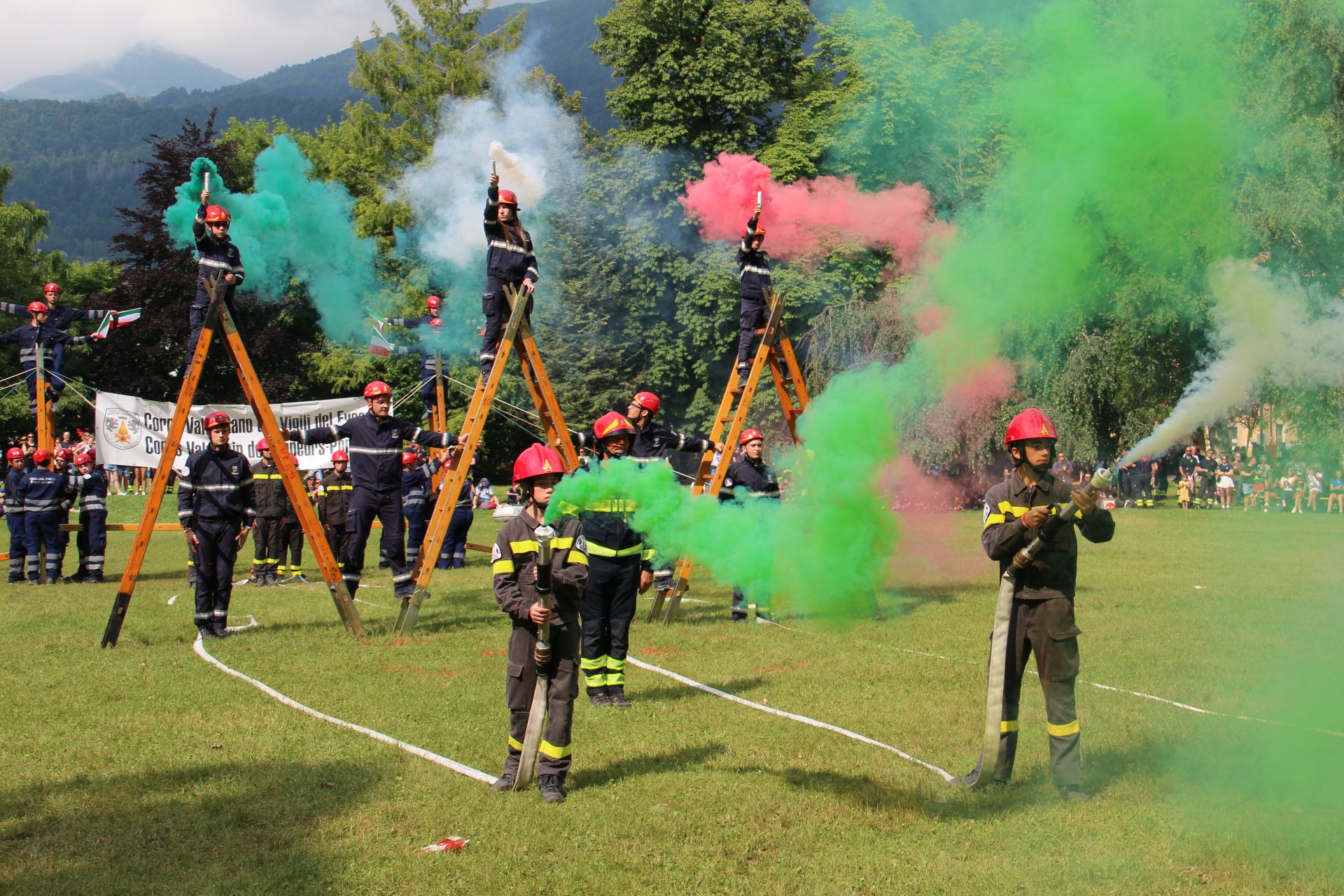 Ecco, appunto, i colori: oltre ai sindaci che invece di esibire il medaglione (quale migliore occasione?) hanno preferito indossare la fascia tricolore, anche i fumogeni utilizzati per rendere ancora più emozionante la manovra con le scale, erano biancorossoverdi.