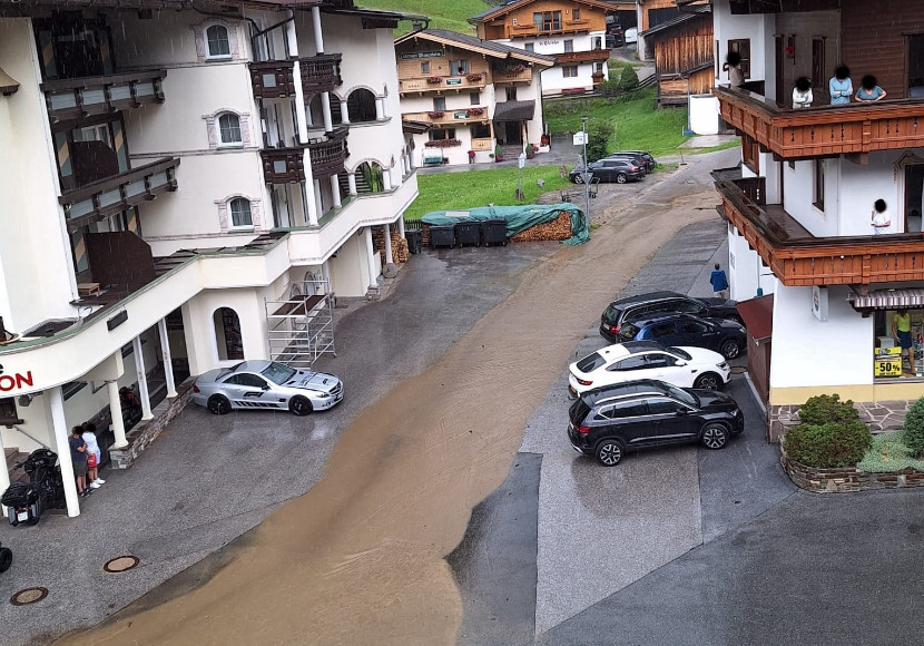 Am Nachmittag wurde die Freiwillige Feuerwehr Gerlos zum ersten Mal alarmiert, nachdem der Mitterhofbach im Ortszentrum aufgrund des vielen Regens über die Ufer trat und sich seinen Weg über die Gerlosstraße bahnte. Als der Niederschlag etwas nachließ, begannen die Wehrleute mit den Reinigungsarbeiten.