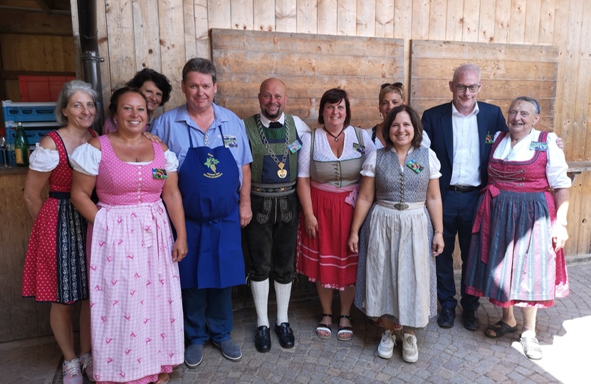 Nach einem erfrischenden Aperitif auf dem Dorfplatz und einem musikalischen Gruß der Altreier Musikkapelle ging es in den überdachten Festplatz, wo die KVW-Ortsgruppen Altrei und Tramin die große Gruppe hervorragend verköstigten, bevor sich die Gäste wieder in alle Himmelsrichtungen verstreuten, um wahlweise an einer Käseverkostung in einer örtlichen Käserei, am Besuch des Bischofsmuseums im Geburtshaus von Bischof Johann Baptist Zwerger oder an einer Führung durch die Voltruier Luipine und die Altreier Lächen teilzunehmen.