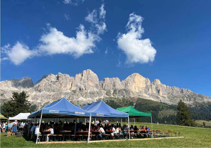 Carezza Dolomites ermöglicht an diesem Sonntag eine besonders umweltschonende Anreise zum Almfest „König Laurin“. Einzelfahrten mit der Kabinenbahn Welschnofen und der Cabrio-Seilbahn Tiers zur Frommer Alm kosten acht Euro, während das Ticket für Hin- und Rückfahrt für zehn Euro erhältlich ist. Von der Frommer Alm gelangen die Gäste auf dem Wanderweg 1A zu Fuß in zirka 20 Minuten zum König Laurin Almfest.