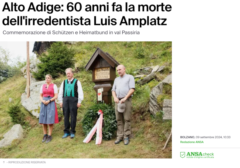 „Dankenswerter Weise berichtete die Agentur über die Gedenkveranstaltung der Südtiroler Schützen und des Heimatbundes anlässlich des 60. Todestages des im Auftrag der italienischen Behörden heimtückisch ermordeten Südtiroler Freiheitskämpfers Luis Amplatz (UT24 berichtete)“, so der Südtiroler Heimatbund in einer Aussendung.Â