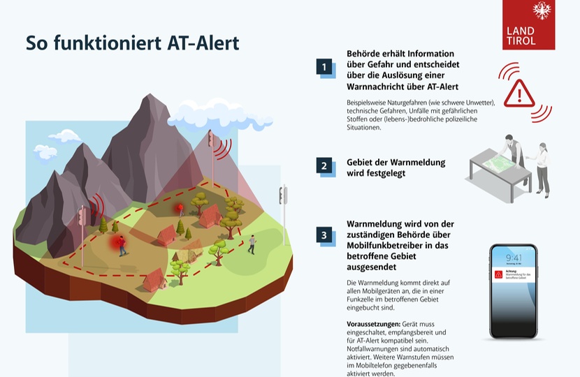 „AT-Alert ist ergänzend zu unseren bestehenden Warnsystemen ein probates Mittel, um die Menschen in bestimmten Regionen schnell und direkt erreichen zu können“, unterstreicht Sicherheitslandesrätin Astrid Mair den Mehrwert von AT-Alert und ergänzt, dass „neue Systeme natürlich entsprechend geprüft und getestet werden müssen, um für den Ernstfall bestmöglich vorbereitet zu sein.“