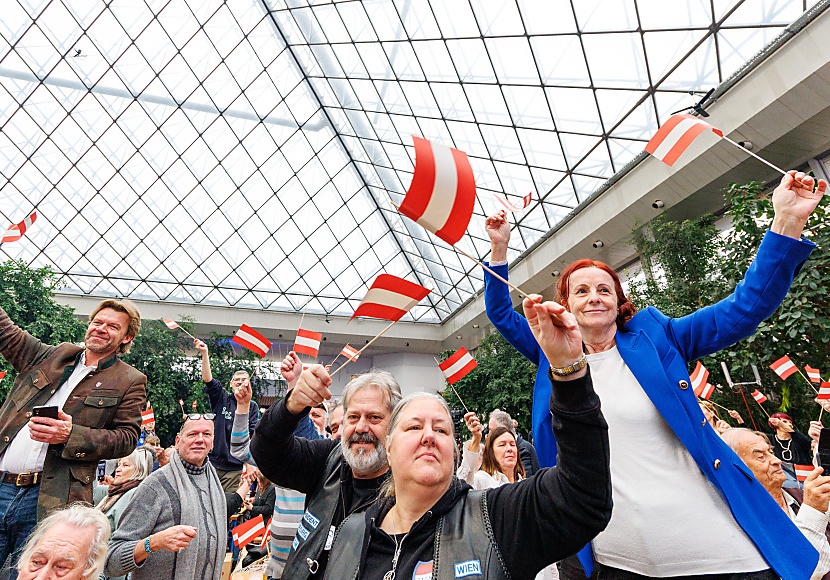 Eine Machtdemonstration im zum Bersten vollen Eventhotel Pyramide war auch die Liste der Vorredner Kickls, die zum Teil schon erfolgreiche Blaue aus den Ländern aufbot, die dort bereits Regierungsverantwortung haben: Etwa Udo Landbauer, der in Niederösterreich auch vor einer Gemeinderatswahl steht. „Wenn jemand die Kraft hat, dieses Trümmerfeld aufzuräumen, dann ist es die Freiheitliche Partei mit Herbert Kickl an der Spitze“, meinte er im Hinblick auf eine blaue Bundesregierung.