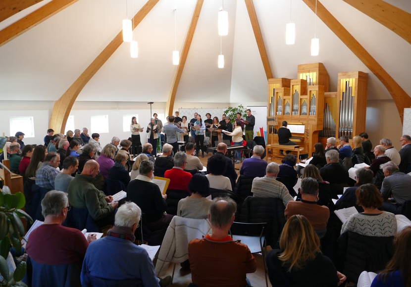 Die ausgewählten Werke in unterschiedlichen Besetzungen und aus verschiedenen Epochen wurden, unter der Leitung von Dominik Bernhard, von einem 14-köpfigen Ensemble vorgestellt. An der Orgel und am E-Piano begleitete Manuel Schiabello. Die Chorleiterinnen und Chorleiter konnten so einen unmittelbaren Höreindruck der Werke gewinnen.