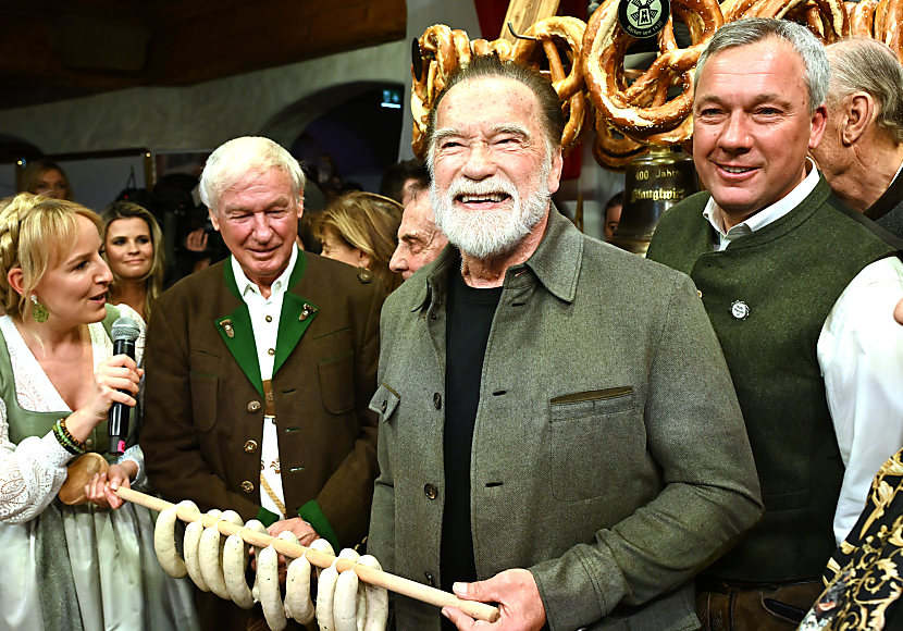 Am Abend ging es dann schließlich ans kollektive Weißwurstzuzeln inklusive großem Promi-Aufgebot, denn die 32. „Weißwurstparty“ ging im Stanglwirt über die Bühne. Dort trumpfte der „Governator“ wieder groß auf. Vor der offiziellen Eröffnung lobte der Hollywoodstar den Stanglwirt unter Blitzlichtgewitter altbewährt über den grünen Klee. Hier gebe es die „beste Bedienung und das beste Essen“ und die „Weißwurstparty“ sei die „größte und beste Weißwurstparty der Welt“, tönte Schwarzenegger in markantem American-Steirisch.