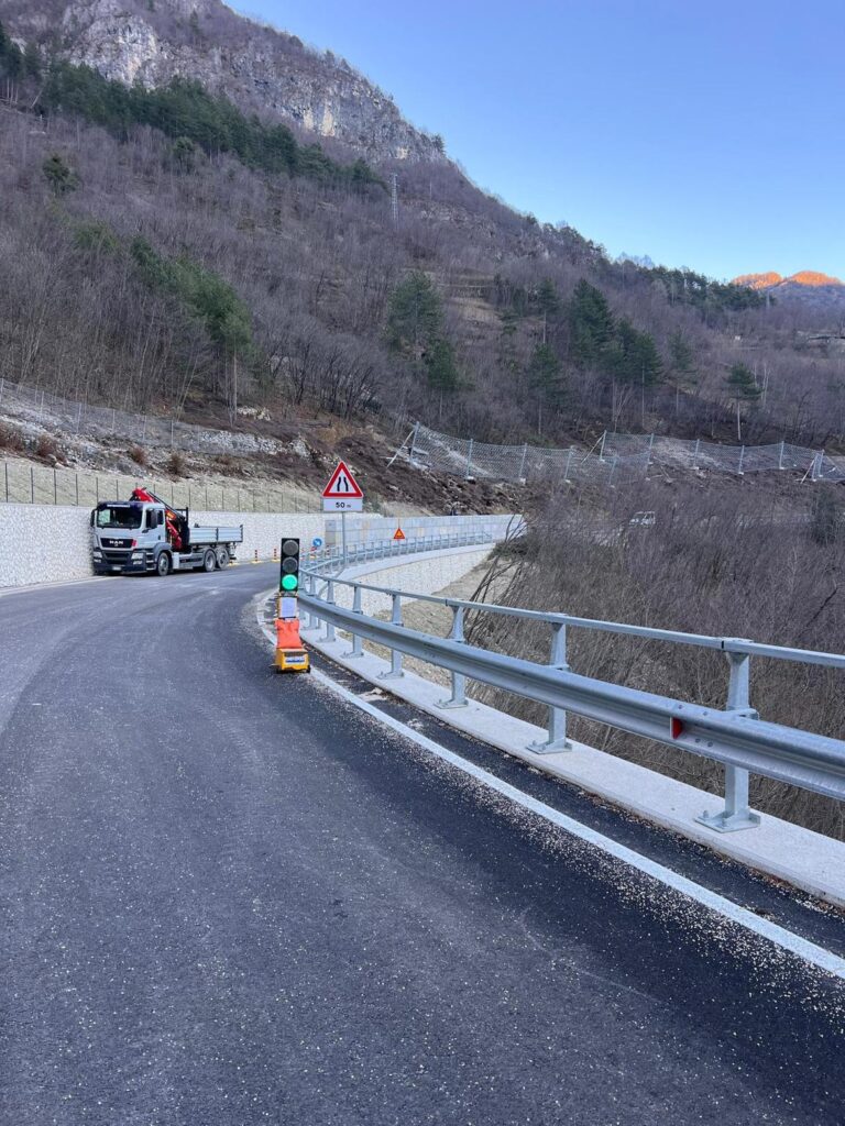 L’intervento continuerà per almeno 5-6 settimane (salvo imprevisti), con il transito dei mezzi sempre garantito dal senso unico alternato lungo la corsia di valle, per consentire il completamento delle opere di protezione della carreggiata.