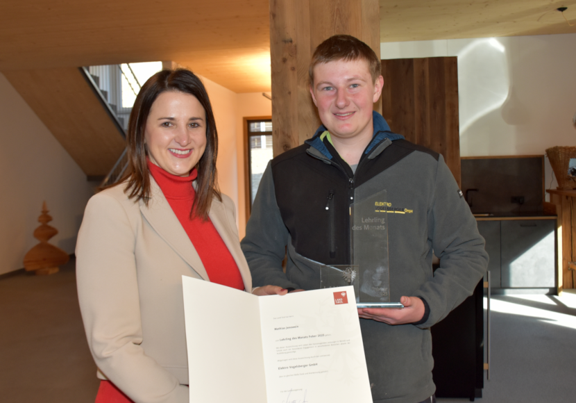 Mathias Jenewein hat die erste Fachklasse an der Tiroler Fachberufsschule für Elektrotechnik, Kommunikation und Elektronik mit ausgezeichnetem Erfolg und alles „Einsern“ im Zeugnis abgeschlossen. Vom Betrieb wurde er besonders für seine Verlässlichkeit, Kollegialität und Pünktlichkeit gelobt. Er absolviert die Lehre mit Matura und nahm am Grundlehrgang der Landesfeuerwehrschule teil.