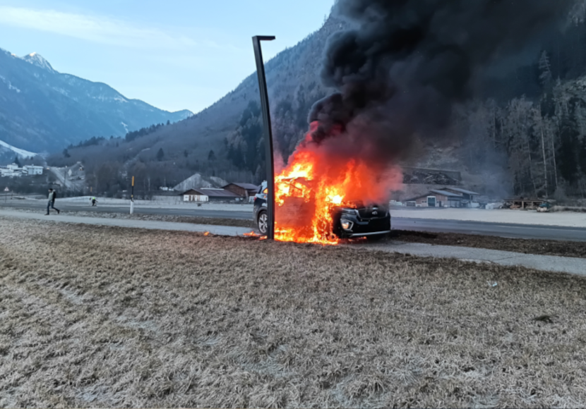 Beim Eintreffen der Feuerwehr stand das Auto bereits in Vollbrand. Unter schwerem Atemschutz und Schaumeinsatz gelang es der Feuerwehr, die Flammen rasch unter Kontrolle zu bringen. Das ausgebrannte Auto konnte dann dem Abschleppunternehmen übergeben werden.
