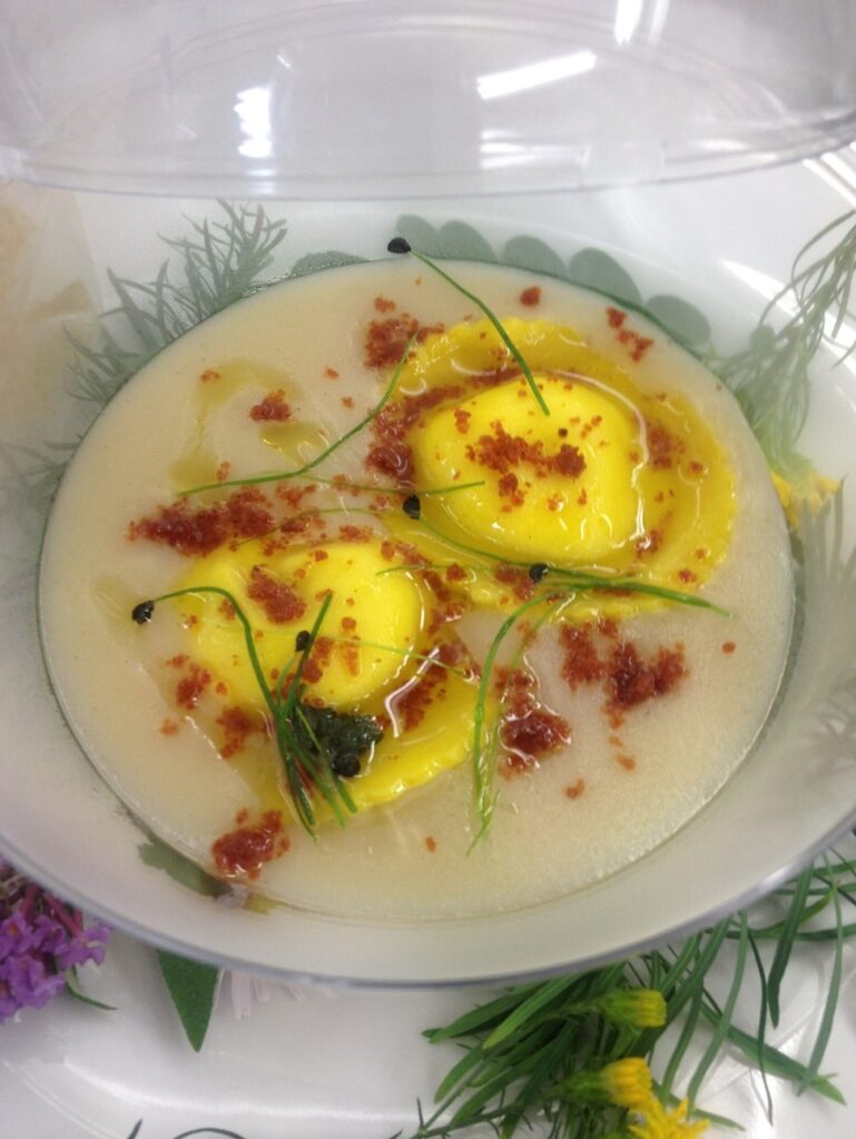 Primo Piatto – Brodo Bruciato con gusci di Malga