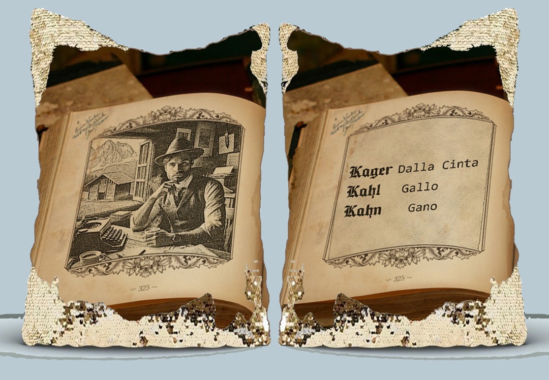 Da un casale a Gsies si rileva il cognome Kahn che nella mente peggiore della sua generazione diventò Gano… Nel nord italico ci sono sei famiglie con questo cognome ma nessuna nelle province di Trento e Bozen il che vuol dire che non riuscì ad obbligare i Kahn a diventare Gano. È un cognome, questo, che, se pur non molto diffuso si trova spesso in Francia e negli USA specialmente nella zona di San Francisco. (continua)