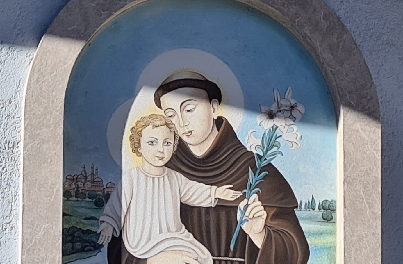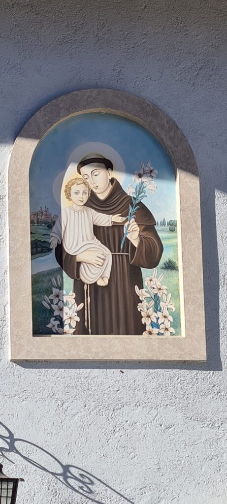 Quasi il Santo assoluto, per le famiglie contadine di allora, che nella stalla avevano due mucche, qualche capra, il maiale, e su, sull’era, il fieno per nutrire il poco bestiame durante i lunghi mesi invernali. Ed è davvero bello ritrovarlo ancora, oggi come un tempo, con il Bambino in braccio ed il fiore di giglio in mano, a proteggere gli abitanti della casa ed anche chi, come noi, si trova a passargli davanti, e non può non mormorare un saluto ed una preghiera…