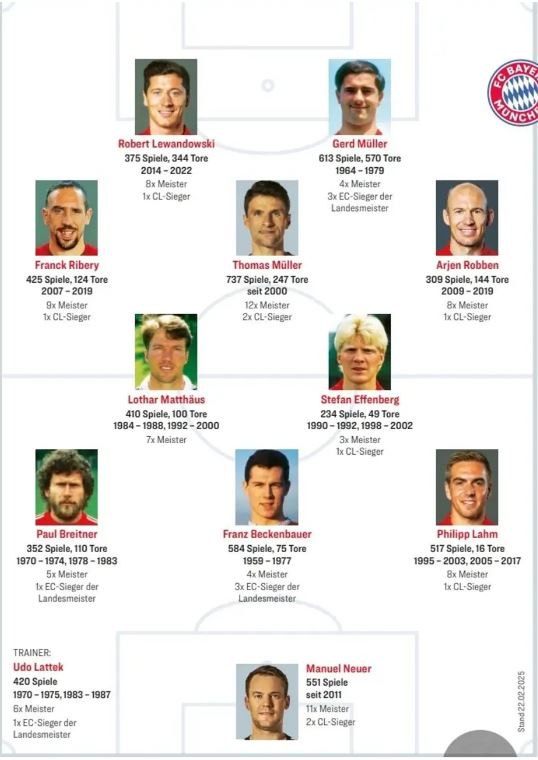 Der Kicker hat kürzlich seine eigene Vorstellung von der besten Bayern-Mannschaft aller Zeiten vorgestellt. Zwei der erwähnten Spieler sind noch aktiv im Verein tätig.