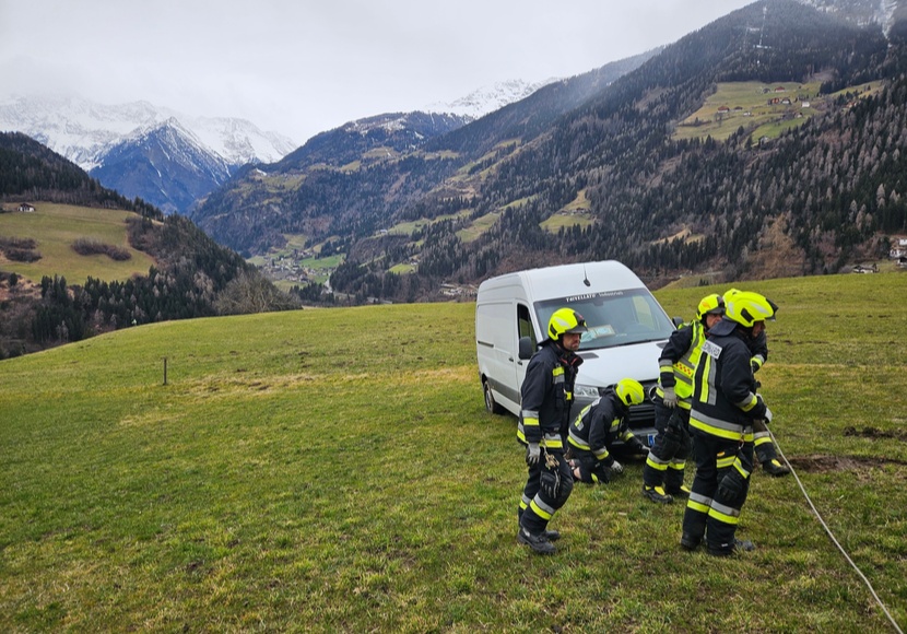 Am frühen Mittwochnachmittag ist die Feuerwehr von St. Leonhard in Passeier zu einer Fahrzeugbergung alarmiert worden. Ein Lieferwagen war aufgrund des weichen Untergrunds in Schwierigkeiten geraten und konnte nicht mehr selbstständig weiterfahren.