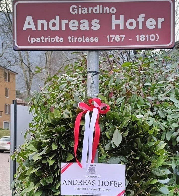 Domenica 23 febbraio la Schützenkompanie Vigolana ha organizzato una breve ma intensa cerimonia in onore dell‚eroe e patriota A.Hofer nel giardino a lui dedicato. L’angolo hoferiano di Trento si trova a Piedicastello, proprio di fronte alla suggestiva chiesa di Sant’Apollinare. Inaugurato nel 2019, ricorda uno dei luoghi in cui l’insurgenza tirolese, guidata da Andreas Hofer, combattè contro gli invasori franco-bavaresi.