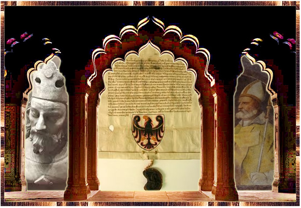 Il diploma originale col quale Giovanni di Lussemburgo, re di Boemia, concedeva nel 1339 a Nicolò di Bruna (l’attuale Brno), Vescovo di Trento, lo stemma di s. Venceslao fu per un periodo irreperibile. Il ritrovamento del diploma è avvenuto del tuto casualmente e dopo lunghe e assidue ricerche d’archivio. Nella primavera del 1971, consultando i documenti del Principato vescovile di Trento, conservati nell’archivio di Stato di Trento alla ricerca di notizie intorno a Filippo Bonacolsi frate francescano vescovo di Trento dal 1289 al 1303, nell’aprire una delle buste contenenti documenti di quel periodo tanto burrascoso per la storia della nostro territorio, si è avuto la gradita sorpresa di avere fra le mani e di ammirare non senza una certa emozione il diploma originale col quale Giovanni re di Boemia pregato dal vescovo Nicolò di Bruna concedeva a lui, ai suoi successori, alla chiesa di Trento, le insegne di s. Venceslao.
