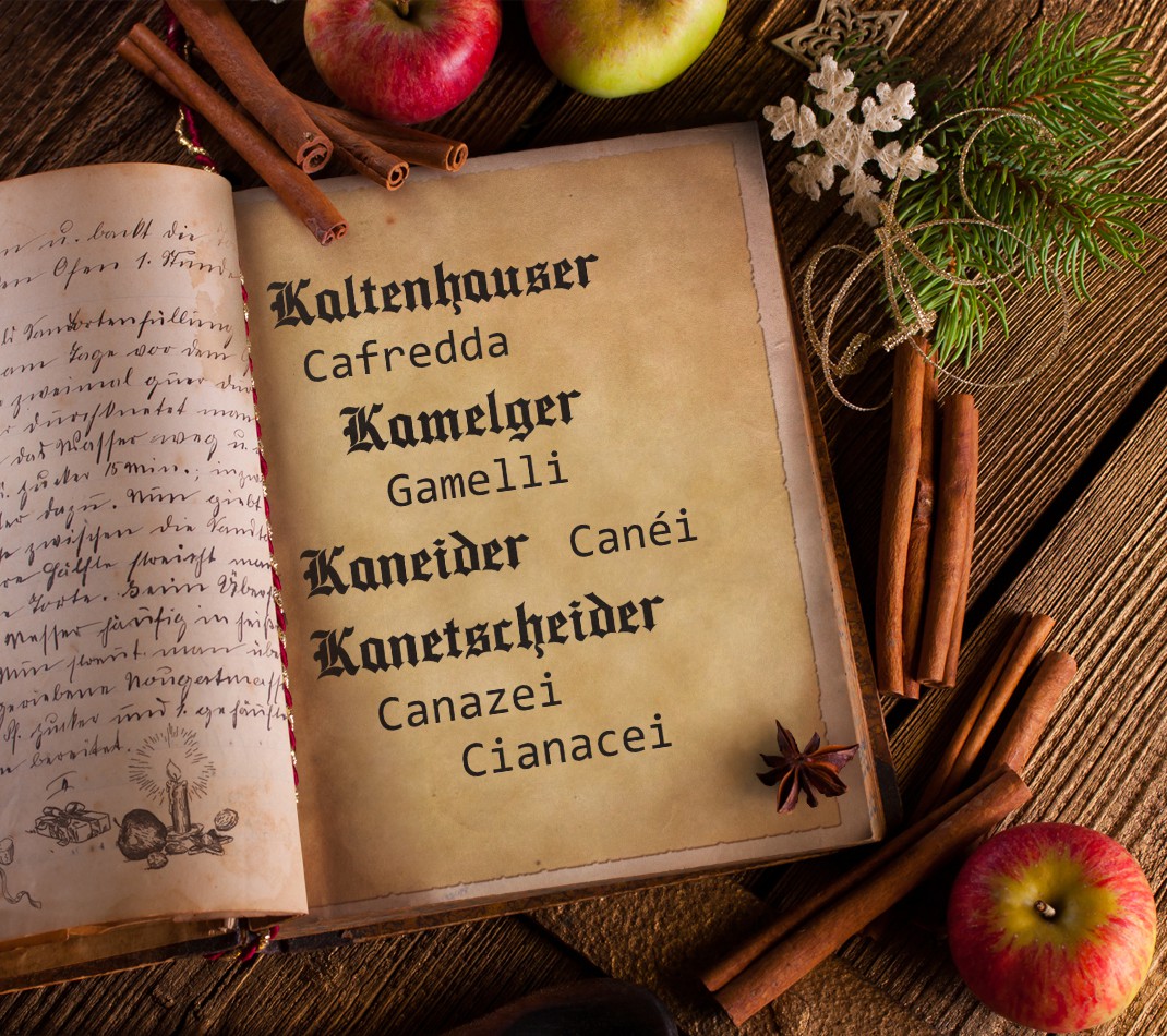 Inseguendo le tratte fonosimboliche che l’equilibrista delle modifiche aveva ormai intrapreso con accanimento più che maniacale, prese Kaltenhauser e lo mutò in Cafredda… Dire semplicistico e banale è un eufemismo se non una tautologia ma ormai il gelatinoso personaggio ci ha abituati a questo e al peggio… Ha sezionato il cognome originale in Kalt (freddo) e Haus (casa) et voilà sfornato un Cafredda, anche questo, come tanti altri nati dalla allucinazione tolomeica, cognome assente dalla mappa italica. E non sapendo che pesci pigliare, prese Kaltenmarkt e lo mutò in Borgofreddo… Stessa sorte insomma. Poi fu la volta di Kamelger che forse per assonanza con il nome personale Gamel, lo trasformò in Gamelli… E pure Kamenschek si beccò Gamelli… Kamerer e Kammerlander si presero rispettivamente Camerari e Camerani… Del resto, avrà arzigogolato l’ometto, Kammer sarebbe tradotto in camera, dunque…