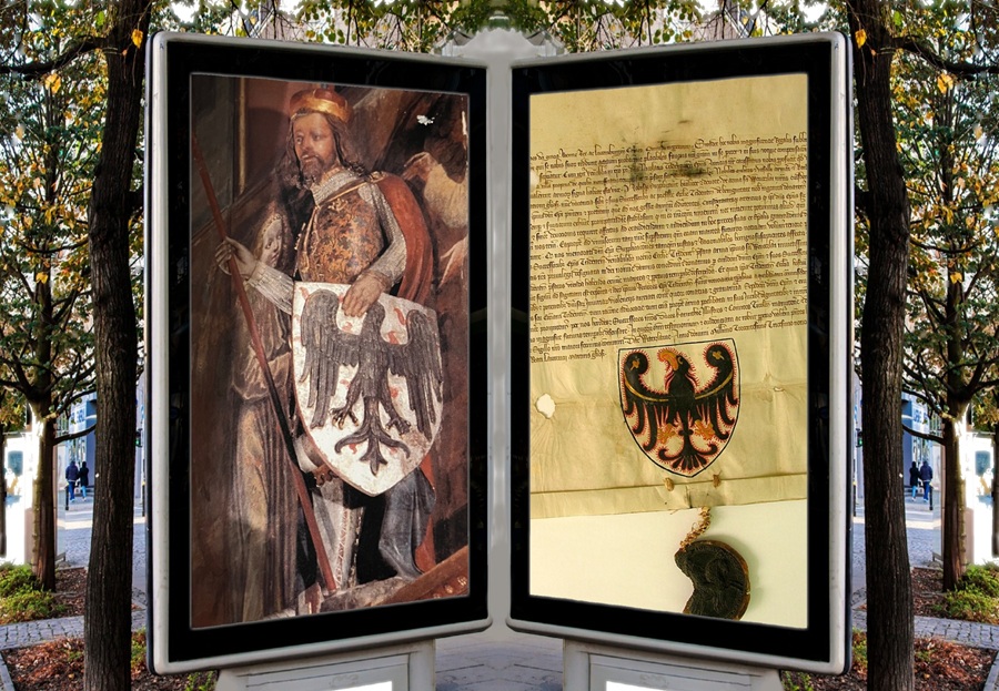 Il diploma originale col quale Giovanni di Lussemburgo, re di Boemia, concedeva nel 1339 a Nicolò di Bruna (l’attuale Brno), Vescovo di Trento, lo stemma di s. Venceslao fu per un periodo irreperibile. Il ritrovamento del diploma è avvenuto del tuto casualmente e dopo lunghe e assidue ricerche d’archivio. Nella primavera del 1971, consultando i documenti del Principato vescovile di Trento, conservati nell’archivio di Stato di Trento alla ricerca di notizie intorno a Filippo Bonacolsi frate francescano vescovo di Trento dal 1289 al 1303, nell’aprire una delle buste contenenti documenti di quel periodo tanto burrascoso per la storia della nostro territorio, si è avuto la gradita sorpresa di avere fra le mani e di ammirare non senza una certa emozione il diploma originale col quale Giovanni re di Boemia pregato dal vescovo Nicolò di Bruna concedeva a lui, ai suoi successori, alla chiesa di Trento, le insegne di s. Venceslao.