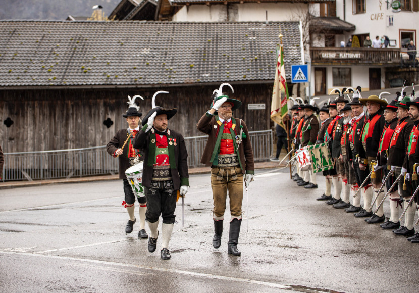 Bezirksmajor Hannes Holzner begrüßte im Zuge des Bezirkstages die Führungskräfte der 26 Mitgliedskompanien. Zunächst marschierten die Schützen zur St. Sebastian-Kirche, wo Landeskurat P. Christoph Waldner OT den Gottesdienst zelebrierte und der verstorbenen Mitglieder gedacht wurde. Im Anschluss traf man sich im Vereinshaus, wo Holzner die Sitzung eröffnete. Ehrengäste waren unter anderem Landeskurat Christoph Waldner, Landeskommandant Mjr. Roland Seppi, der Pusterer Bezirksmajor Thomas Innerhofer und Landesvertreter der Südtiroler Bergbauern Alberich Hofer.