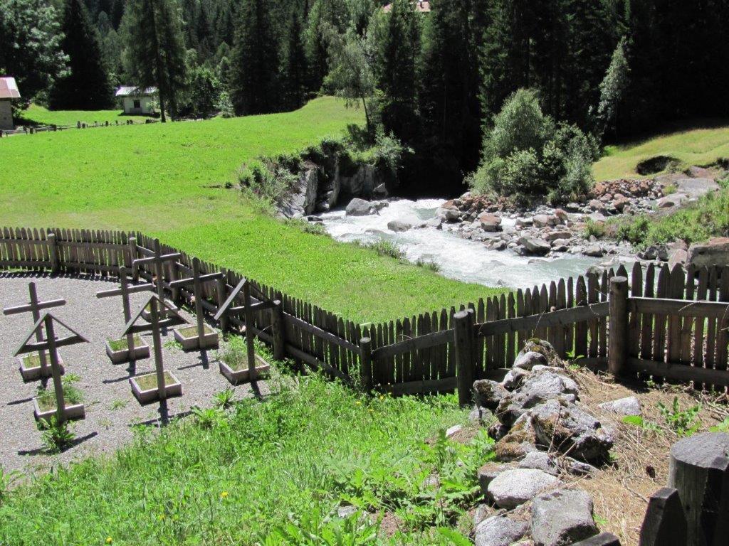 Percorso: da Carisolo si segue la strada della Val Genova fino al lago artificiale: qui durante la stagione estiva la strada è chiusa, percorribile solo a piedi o con i mezzi pubblici, siamo infatti nel cuore del Parco Naturale Adamello Brenta. Lasciata l’automobile in uno dei numerosi parcheggi, alcuni dei quali a sosta gratuita, si percorre il Sentiero delle Cascate, fra rumore d’acqua e scorci di panorama su cascate, montagne granitiche e ghiacciai eterni.   In circa 2 ore e mezza si giunge alla località Ragada, con la piccola chiesetta ed il Soldatenfriedhof.