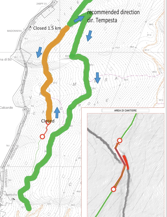 Il tratto nuovamente percorribile è evidenziato nella mappa allegata. Il restante percorso fino a Tempesta rimane temporaneamente chiuso per consentire il completamento dei lavori di messa in sicurezza del tracciato.