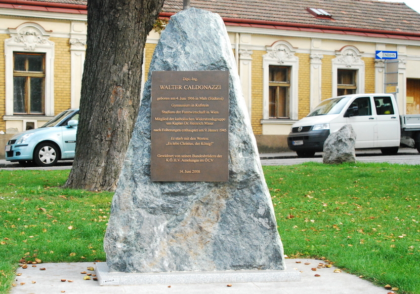 Schon im Jahr 1945, noch in den Wirren der Nachkriegszeit, errichteten Freunde auf der Praa-Alm auf, wo Walter Caldonazzi sein Herz verloren hatte, ein Kreuz. In Kufstein, auf der Alm, in Wien und in Innsbruck – überall erinnern Gedenktafeln, Kreuze und Plätze an den jungen Mann, der sein Leben für Heimat, Glauben und Freiheit gab.