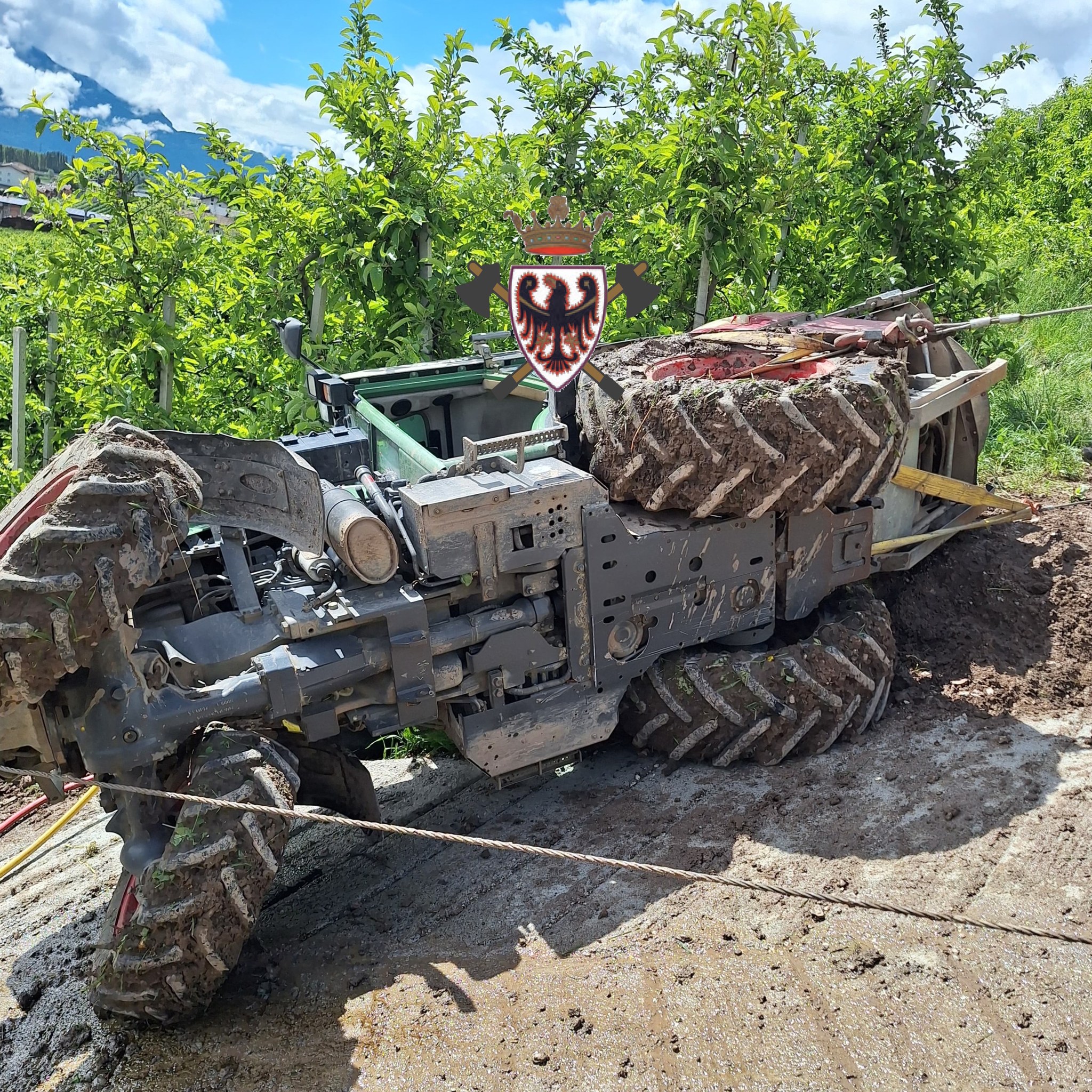 Un trattore si è ribaltato ieri mattina nelle campagne in località Lo a Cles. Il mezzo si e‘ adagiato su di un fianco