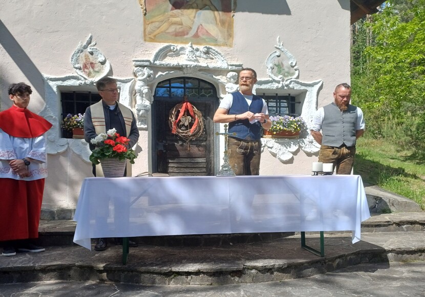 Besonders beeindruckend war die Einführung durch Roland Seppi, ehemaliger Hauptmann der Schützenkompanie „Peter Kemenater Schabs-Aicha“. In seiner Rede erinnerte er an die Arbeiten von Pfarrer Adalbert Steinmeier, der bereits vor Jahrzehnten die Kapelle „Urlaub Stöckl“ saniert und gemeinsam mit Bürgern aus Aicha gepflegt hatte. „Dieses Schmuckstück, das wir heute hier sehen, ist ein Sinnbild für das Bewahren unserer Geschichte,“ betonte Seppi. Auch der historische Kreuzweg vom Sonneck herauf sei damals unter Steinmeiers Führung gestaltet und später erneuert worden.