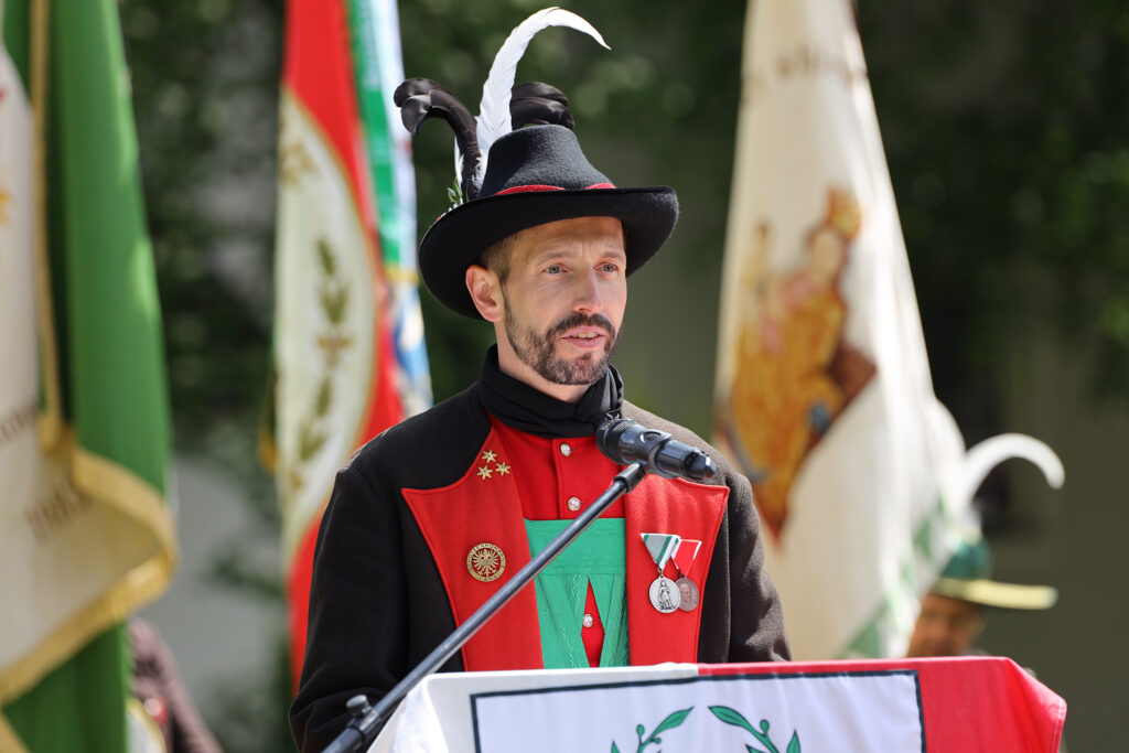 Für einen weiteren Höhepunkt sorgte die Festrede von Andreas Pixner, Hauptmann der Schützenkompanie „Franz Höfler“ Lana. Mit klaren Worten erinnerte er an die historischen Verdienste der Burggräfler Schützen – von den Wiedergründungen nach dem Zweiten Weltkrieg bis hin zu politischen Aktionen wie dem ersten Unabhängigkeitstag. „Wir Burggräfler Schützen sind nichts Besseres, aber etwas Besonderes“, betonte Pixner und unterstrich damit das Selbstverständnis des Tiroler Schützenwesens. Schützen seien keine Parteiorgane, sondern hätten die Aufgabe, gesellschaftliche Verantwortung zu übernehmen und Anliegen aus dem Volk in die Politik zu tragen – nicht umgekehrt.