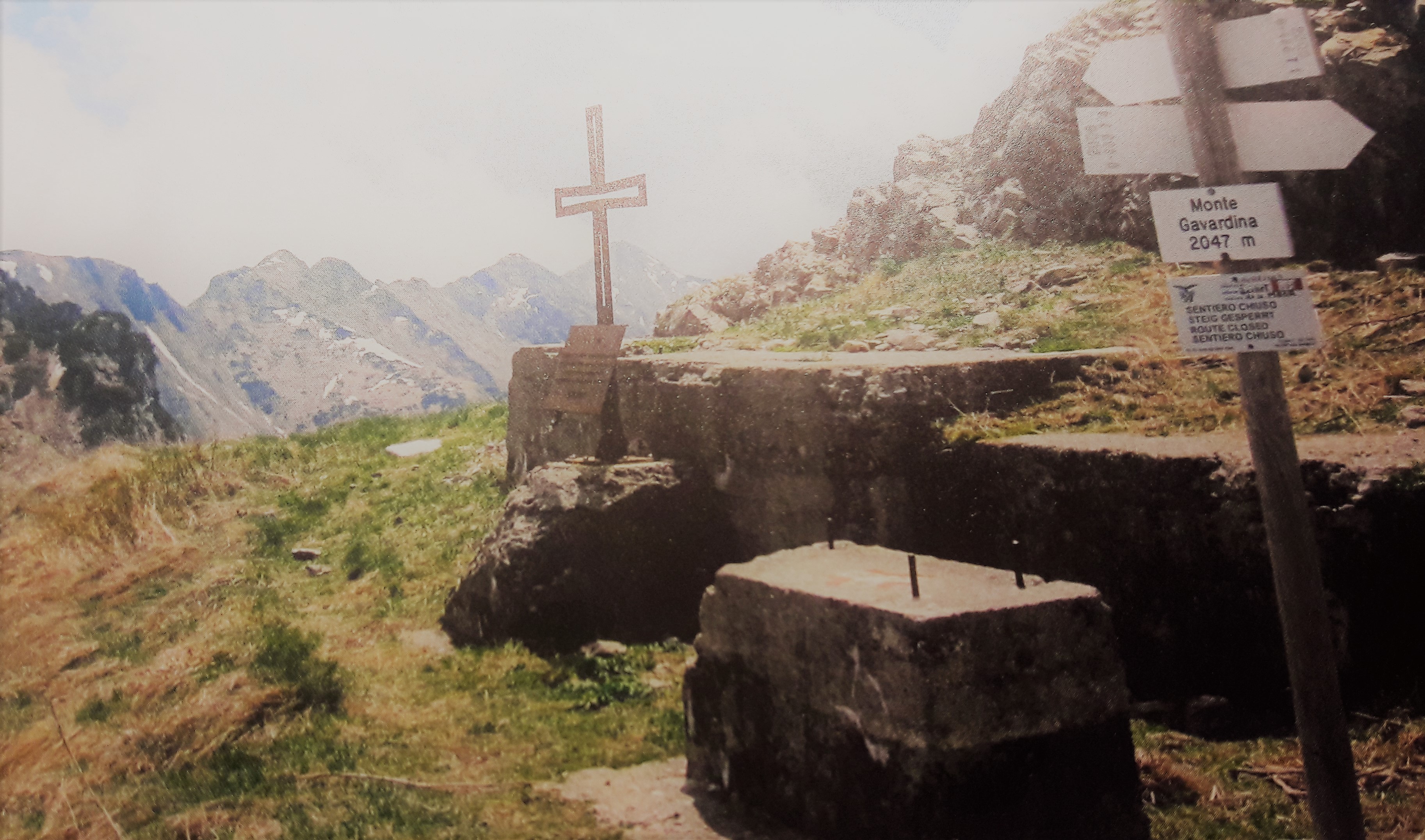 La Croce di An der Front, posata dalle compagnie Judicarien Tre Pief e Villanders, s trova proprio sulla cima del Monte Gavardina, a 2047 metri di quota.