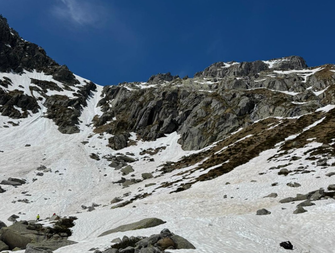 Questa prima ricerca ha dato esito negativo. I soccorritori si sono quindi calati lungo la parete sotto la base del pendio, dove finalmente il cane ha segnalato il corpo del disperso in un anfratto roccioso, dove era stato coperto dalla neve. Qui, alla testata della valle di Conca e alla base delle pareti, sulla verticale del primo ritrovamento ma ad una distanza di quasi 1000 metri, 400 metri di dislivello più sotto, i soccorritori hanno così trovato il corpo di Aziz Ziriat.