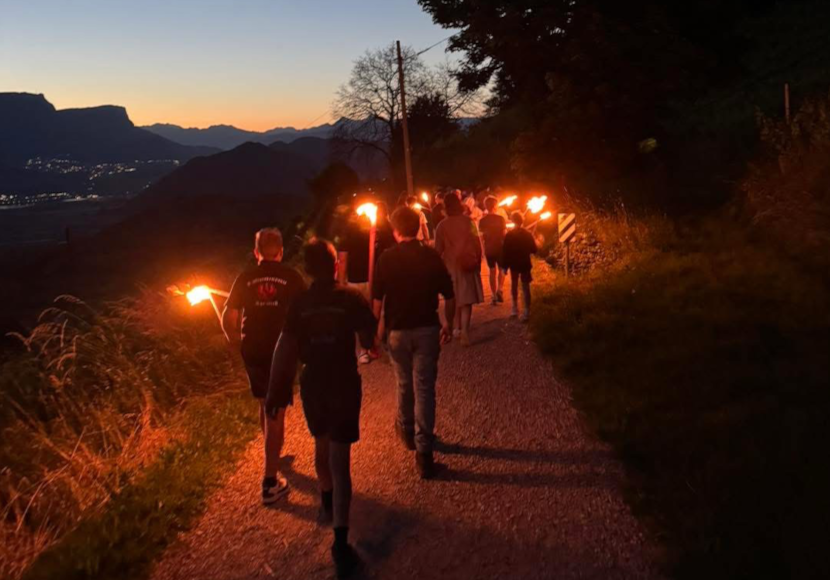 Die Teilnehmer wanderten mit entzündeten Fackeln in dunkler Nacht zurück zum Montaner Festplatz zum geselligen Ausklang.