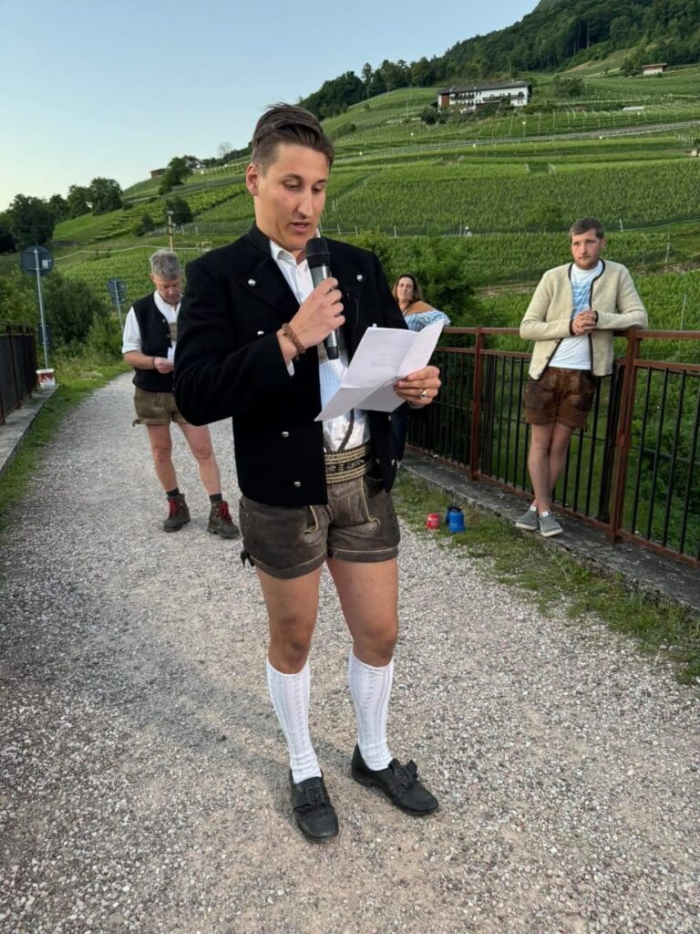 Bezirksmajor Peter Frank begrüßte die Anwesenden am Festplatz Montan und führte inhaltlich in die Gedenkveranstaltung ein, indem er in Episoden die fragwürdigen Ereignisse im Unterland erläuterte. Marketenderin Anna Kaufmann erinnerte im Anschluss am Festplatz Montan an die leidvolle Geschichte vor 80 Jahren zurück. Für Südtirol bedeutete 1945 nicht Unabhängigkeit und Selbstbestimmung, sondern Verbleib bei Italien, die Verwehrung des Selbstbestimmungsrechtes, Italianisierungstendenzen durch die italienische Zivilverwaltung sowie der Versuch, die zuerkannte Autonomie innerhalb der Region zu überstimmen. Doch nicht nur das: Der Bezirk Unterland wurde 1945 der Provinz Trient zugesprochen, um die Volksgruppenverhältnisse in ihr Gegenteil umzukehren.