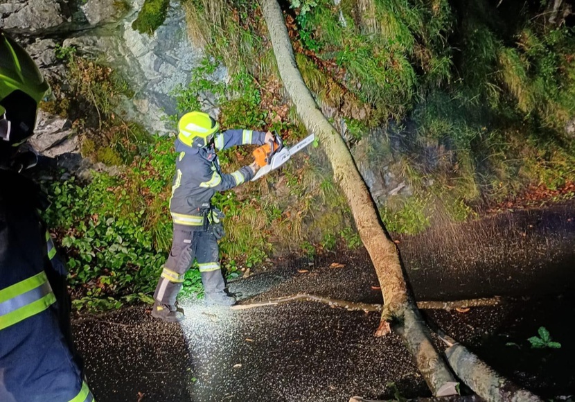 Mittels Motorsäge wurde der Baum zerkleinert und von der Fahrbahn entfernt. Nach kurzer Zeit konnte die Straße wieder für den Verkehr freigegeben werden.