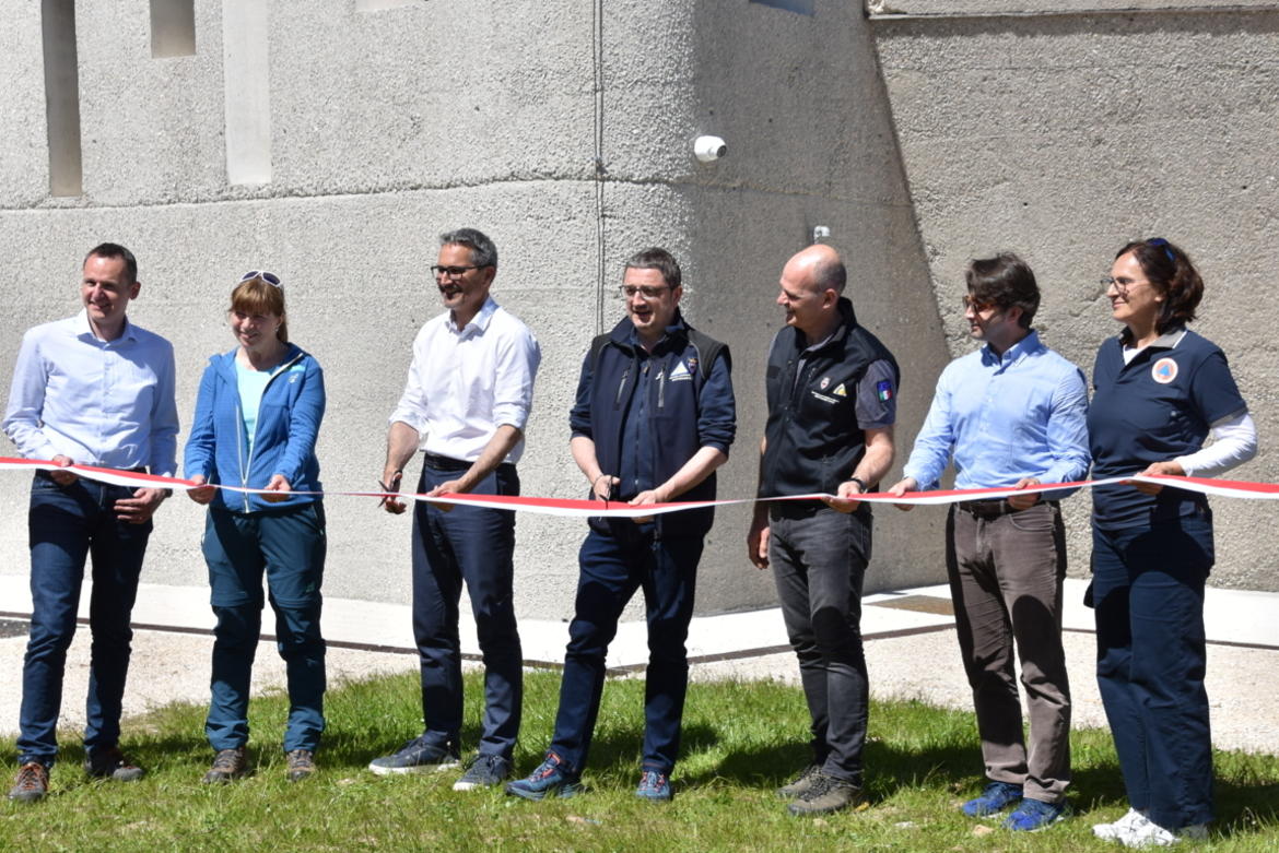 Qui il nastro è biancorosso, come giusto che sia. La struttura è stata infatti realizzata dalle due province autonome e dalle stesse finanziata in parti uguali. Quindi il nastro inaugurale simboleggia appunto la nostra autonomia: di decidere, di scegliere, di fare, di gestire le nostre competenze e di finanziarle.