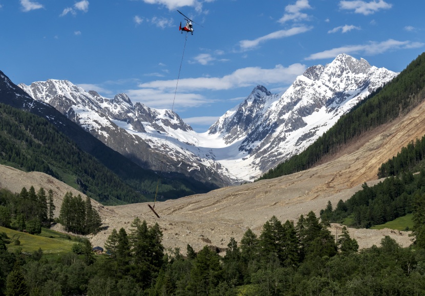 „Bisher haben wir keine größeren Risse oder Einstürze festgestellt“, sagte Mayoraz der Zeitung. „Das kann sich jedoch ändern, wenn das Eis zu schmelzen beginnt.“ Es geht um das Eis im Schuttberg. Rund ein Drittel der neun Millionen Kubikmeter, die das Dorf und das Flussbett der Lonza nach dem Gletscherabbruch am vergangenen Mittwoch verschüttet haben, dürften Gletschereis sein, schätzen die Experten.