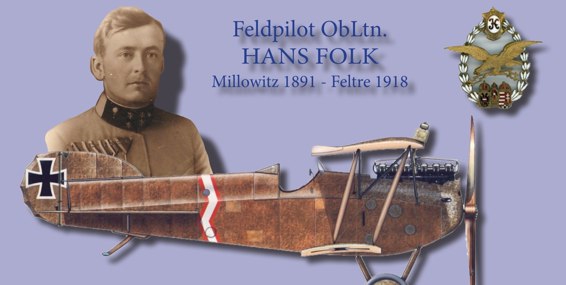 Dedizione, sacrificio, spirito di servizio, cameratismo hanno contrassegnato la carriera militare di Hans Folk, originario della Moravia del sud, fino alla sua prematura scomparsa, durante un combattimento areo sopra le cime del Grappa, il 15 giugno 1918.