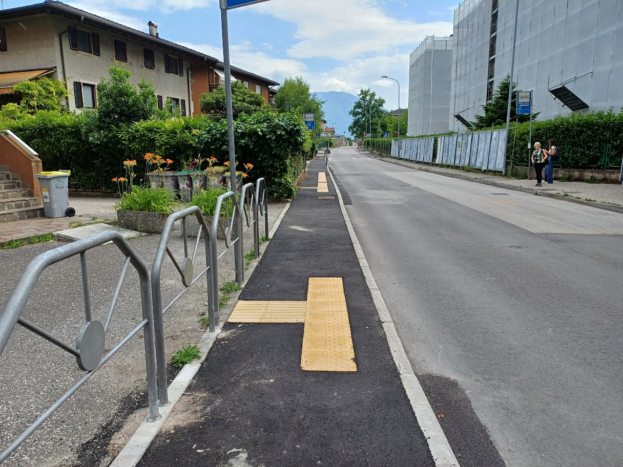 In corrispondenza della fermata dell’autobus e degli attraversamenti pedonali sono state inoltre posate mattonelle tattili per la segnalazione del pericolo.