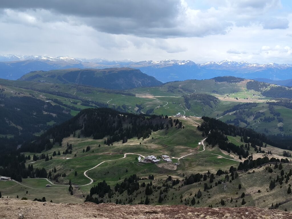 Il sentiero ora attraversa le pendici prative del Sasso di Levante e del Sasso Piatto, fino a raggiungere il Rifugio Sandro Pertini, per uscire sull’ampia sella erbosa del Giogo di Fassa presso il Rifugio Sasso Piatto. Proseguendo lungo il sentiero n. 594/4, sugli Ores de Fascia, si percorre la cresta e sul versante della Val Duron si raggiunge il passo da cui è possibile godere del magnifico panorama dell’Alpe di Siusi e delle Odle in primo piano. Dal Passo Duron si prosegue verso il Rifugio Alpe di Tires sulla strada sterrata che sale costantemente fino a farsi molto ripida nell’ultimo tratto, stretti fra la massiccia parete del Molignon a sinistra e le aguzze guglie giallo-rossastre dei Denti di Terrarossa a destra. Dal Passo Duron si rientra a Campitello scendendo a sinistra la carrareccia che si snoda attraverso i pascoli dell’alta Val Duron e percorrendone il fondovalle lungo il sentiero n. 532 fino al Rifugio Micheluzzi e, in discesa, fino a Ciampedel.
