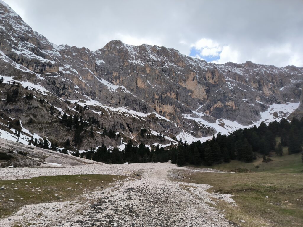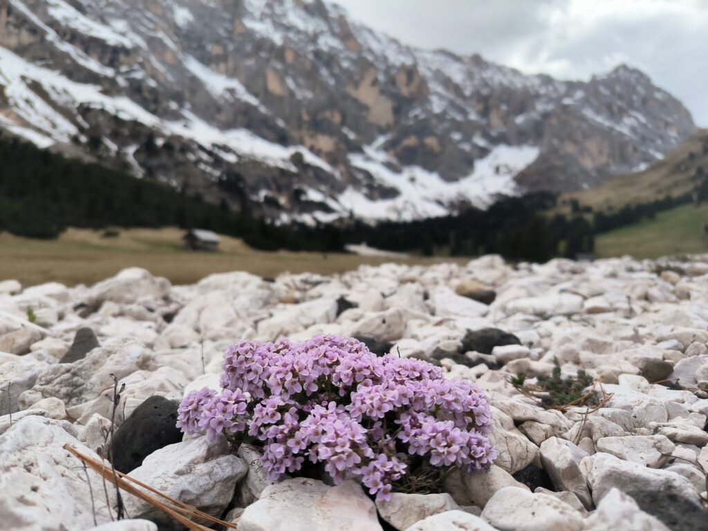 Un sentiero panoramico, immerso tra le Dolomiti, un luogo che, nel risveglio della primavera, ancora gode di pace e di silenzio, del gorgoglio dell’acqua che è stata neve e dei passi veloci delle marmotte che escono impavide dalle loro tane.