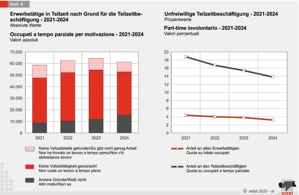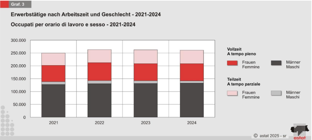 Vollzeit bleibt die Regel bei Männern (über 90 Prozent), während 43,8 Prozent der Frauen in Teilzeit arbeiten. Die unfreiwillige Teilzeit nimmt ab und betrifft 2024 noch 3,2 Prozent aller Erwerbstätigen, ein Rückgang gegenüber den Vorjahren.