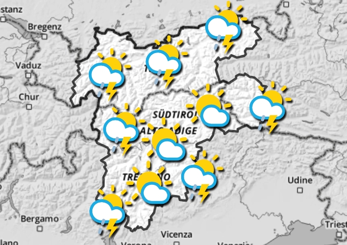 Temperature previste: Innsbruck 17° /331°; Bolzano 19° / 35°; Trento 19° / 31°