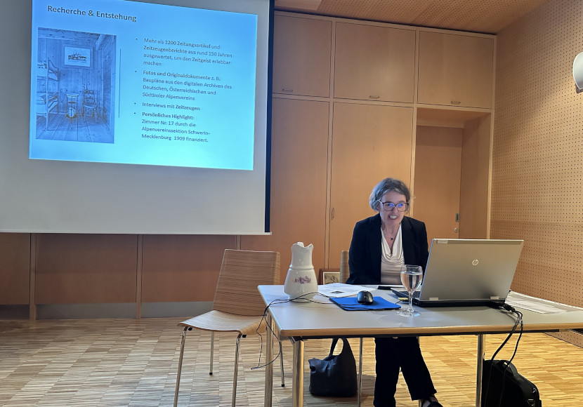 Im Zentrum des Abends stand die Autorin der Publikation, Karin Ortler, deren Familie seit über einem Jahrhundert eng mit der Hütte verbunden ist. Mit viel Engagement und akribischer Recherche hat sie in knapp einem Jahr über 1.200 Zeitungsartikel, Fotografien und historische Dokumente ausgewertet und zahlreiche Gespräche mit Zeitzeugen geführt. Das Resultat ist ein über 200 Seiten starkes Werk, das den Wandel der Hütte von ihren Anfängen als einfache Selbstversorgerunterkunft im Jahr 1875 bis hin zu heutigen alpintouristischen Herausforderungen beleuchtet.