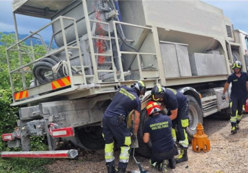 Ein 35 Tonnen schwerer Lkw, beladen mit Zement, blieb bei einem Rückfahrmanöver am Straßenrand einer Baustelle in Kaltern im Schotter stecken. Die Freiwillige Feuerwehr Mitterdorf und die Kranmannschaft der Berufsfeuerwehr Bozen wurden alarmiert.