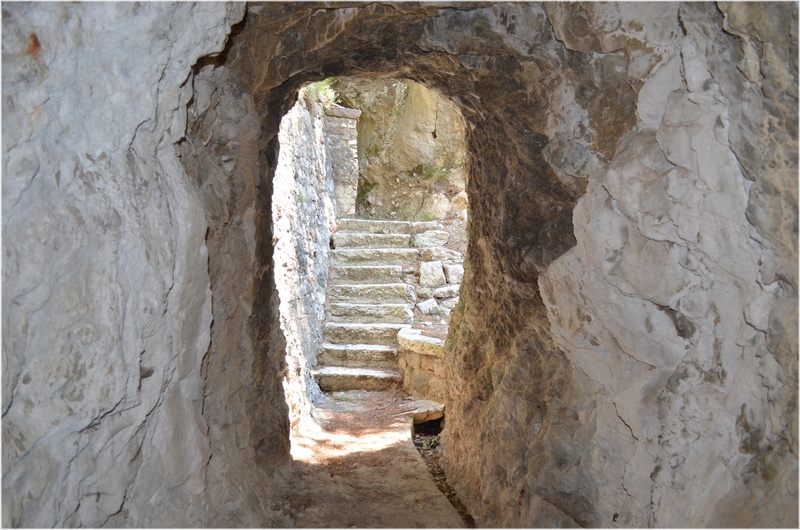 Percorso: da Nago, seguendo il sentiero marcato 637, si sale a serpentina ma in maniera decisa fra i resti delle postazioni e le trincee, fino al punto panoramico antistante la galleria.