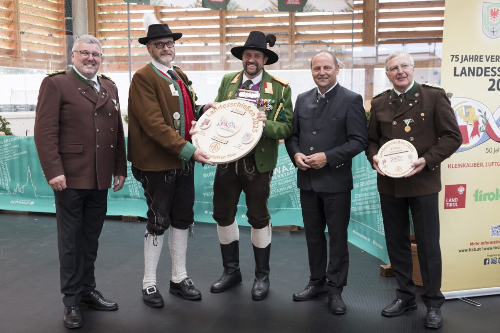 Ca. 300 Teilnehmer sind zur Siegerehrung in die Silberstadt Schwaz gekommen, darunter Landeskommandant Mjr. Thomas Saurer (BTSK) mit einigen Mitgliedern der Bundesleitung, Landesoberschützenmeister Jochen Klammsteiner (TLSB) mit einigen Mitgliedern der Vorstehung, sowie die Spitzen der Schützenbünde der Alpenregion Landeshauptmann Martin Haberfellner (Bayern), Landeskommandanten Mjr. Enzo Cestari (Welschtirol), Bundesschießleiterin Sonja Hackhofer-Oberhofer (Südtirol). Herr Landeshauptmann-Stellvertreter Josef Geisler überbrachte die Grußworte und den Dank des Landes Tirol und die Bürgermeisterin der Stadt Schwaz Victoria Weber hieß alle Ehrengäste und Teilnehmer in ihrer Stadt am Mehrzwecksportplatz willkommen. Neben dem Organisationskomitee waren zahlreiche Schützenvertreter, wie die Viertelschießreferenten, gekommen, um die siegreichen Teilnehmer zu feiern. Neben der Siegerehrung des Eröffnungsschießens wurden die Sieger in insgesamt 32 weiteren Schießklassen geehrt. Alle Ergebnisse werden in einem separaten Ergebnisheft gesammelt aufbereitet, können aber auch online unter https://www.tlsb.at/landesschiessen25/ergebnisse/ eingesehen werden.