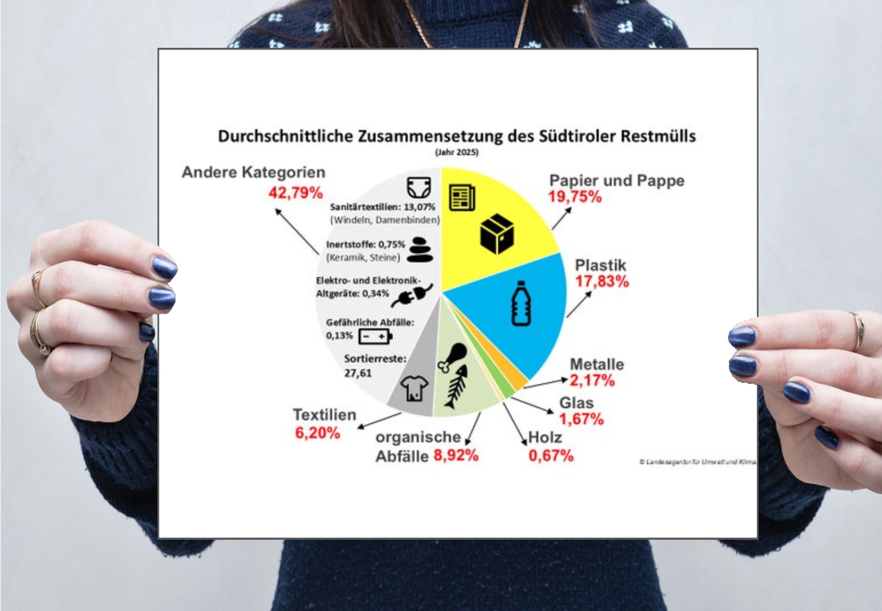 Ogni cinque-dieci anni viene effettuata a livello provinciale un’analisi dei rifiuti solidi urbani, l’ultima risale al 2016/17. Completata l’analisi merceologica dei rifiuti urbani 2024/25, i risultati sono stati presentati il 19 giugno a Bozen ai rappresentanti dei Comuni, delle Comunità comprensoriali e delle aziende municipalizzate che gestiscono gli impianti di trattamento dei rifiuti e i centri di riciclaggio. „L’analisi dei rifiuti è uno strumento prezioso per determinare lo stato attuale della raccolta differenziata e definire misure mirate per il futuro. In questo modo vediamo dove possiamo migliorare e come dimensionare correttamente i servizi di raccolta a livello locale “, ha sottolineato l’assessore provinciale alla Protezione dell’ambiente, della natura e del clima Peter Brunner. “Attualmente in Südtirol sono disponibili più di 80 centri di riciclaggio comunali e intercomunali che danno un importante contributo alla promozione di un comportamento rispettoso dell’ambiente„.