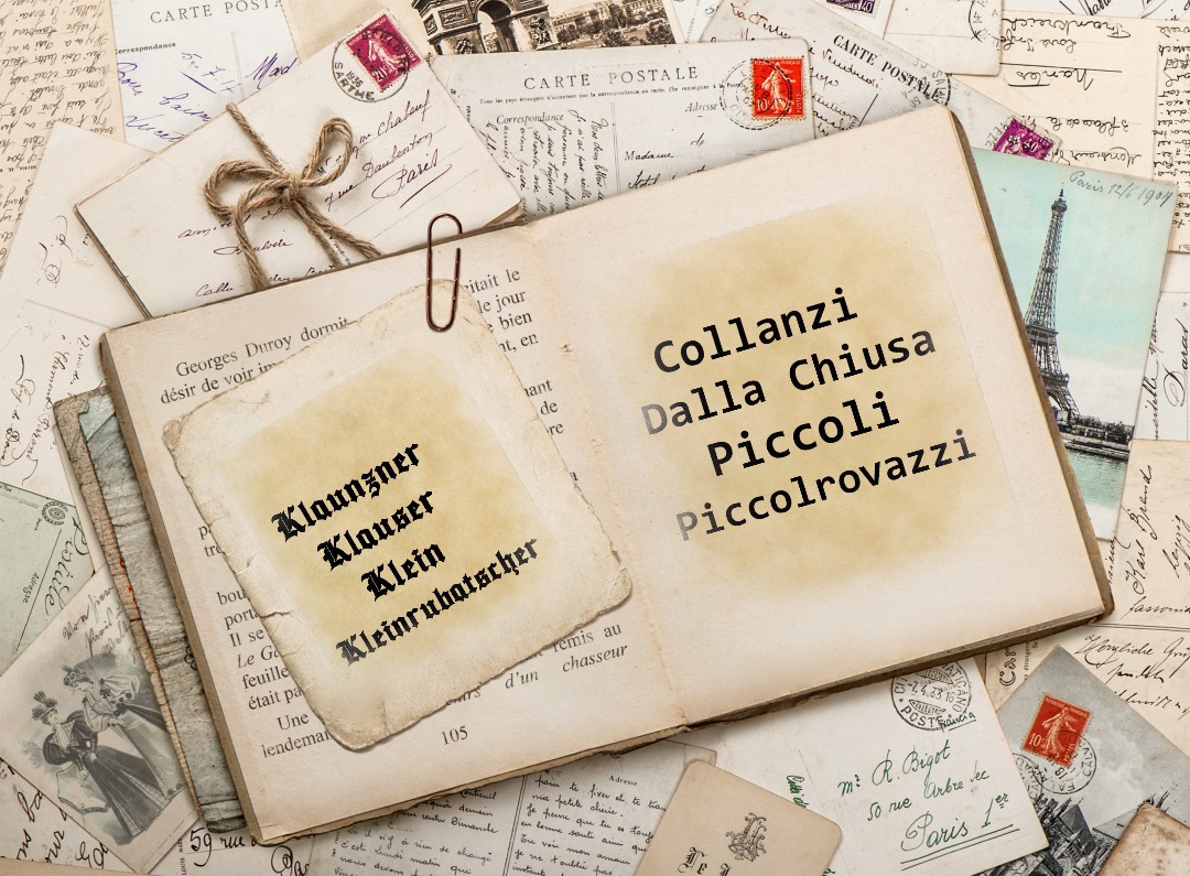 Kleinrubatscher, è un cognome tipico del Südtirol, dove la sovrapposizione linguistica tra tedesco e ladino ha generato cognomi composti simili. Ha un significato complessivo: “il piccolo di Rubatscher” oppure “colui che viene dalla piccola località di Rubatscher”. Per Tolomei diventa Piccolrovazzi. (continua)