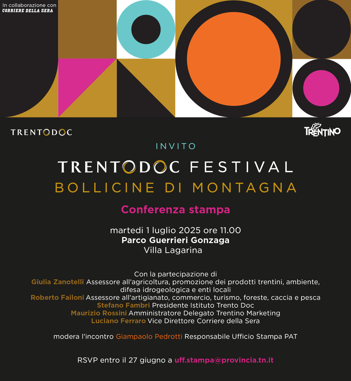 La kermesse verrà presentata martedì 1° luglio alle ore 11, nella splendida cornice del Parco Guerrieri Gonzaga di Villa Lagarina, alla presenza delle autorità e degli organizzatori del Festival – Istituto Trento Doc e Trentino Marketing, in collaborazione con Corriere della Sera.