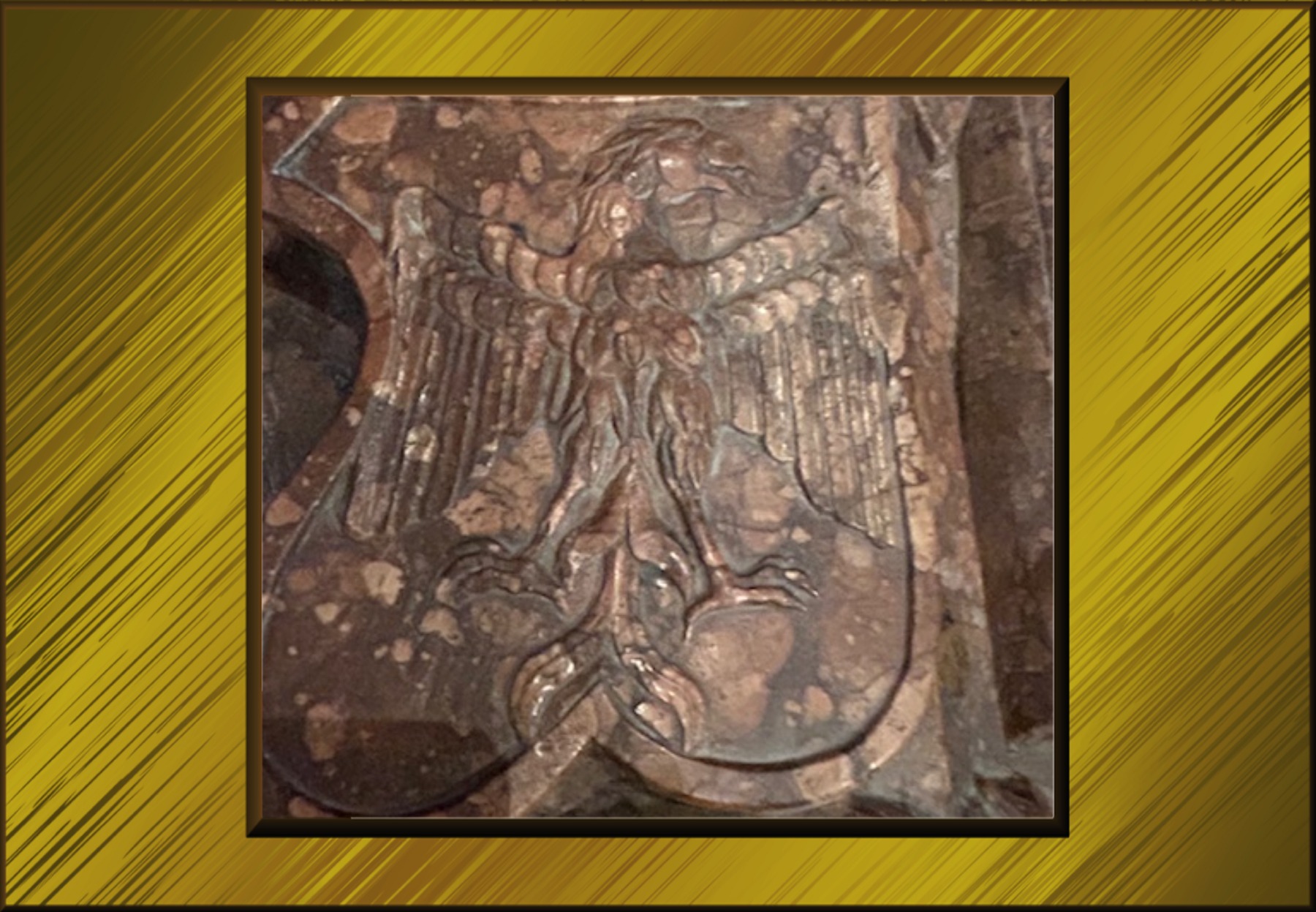 Come era naturale le raffigurazioni dell’aquila di Trento scolpite nella pietra non danno i colori dello stemma che possiamo invece vedere nelle miniature, nei ricami e nelle pitture. Le più antiche raffigurazioni a colori dell’aquila di s. Venceslao sono del tempo del Vescovo Giorgio di Liechtenstein (1390-1419), nativo della Moravia come Nicolò di Bruna. Si ricorda una pianeta ricamata che porta gli stemmi del Liechtenstein e l’aquila nera di Trento circondata dalle fiammelle. La pianeta fra le altre figure presenta un Vescovo aureolato benedicente che altri non può essere che s. Vigilio.